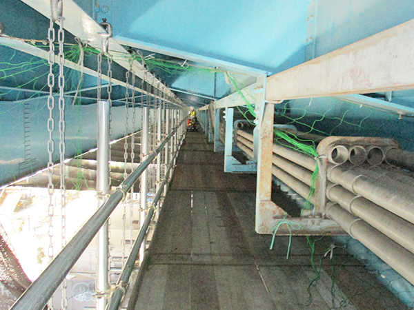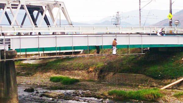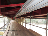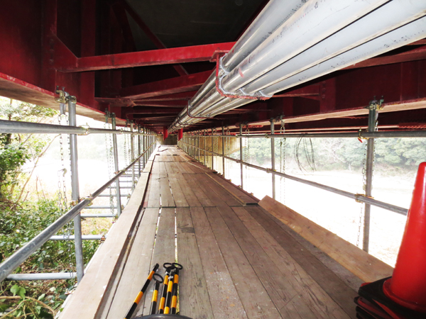 橋梁の補修工事に必要な仮設足場の施工も行います。高所作業になりますので、徹底した安全対策を施し作業を行います。