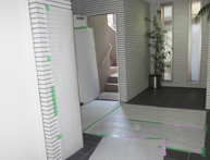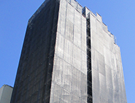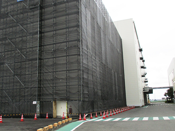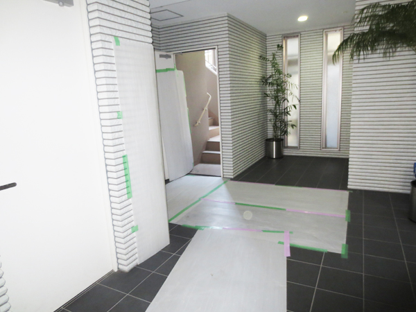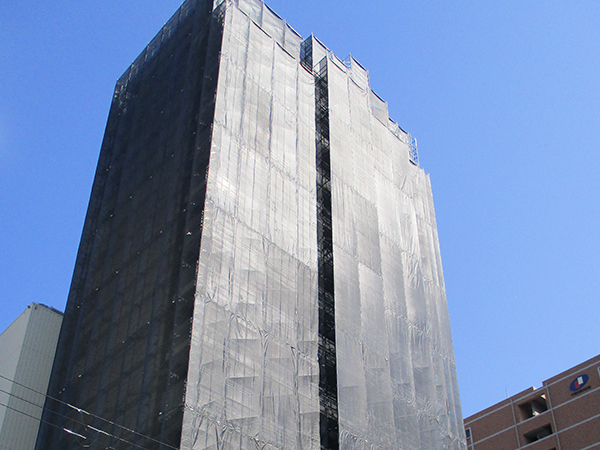 大手通信事業者様の仮設足場工事では、徹底した安全管理のもと行う足場工事以外に、ビル・マンション内の養生も併せて行わせていただきます。