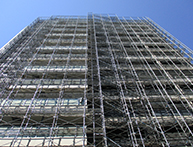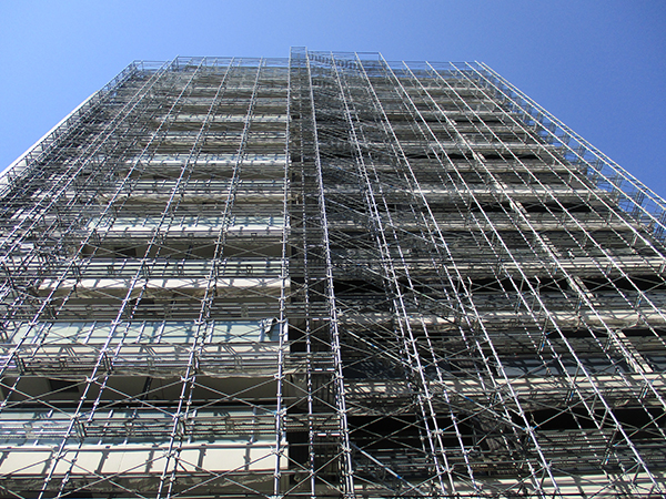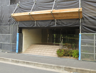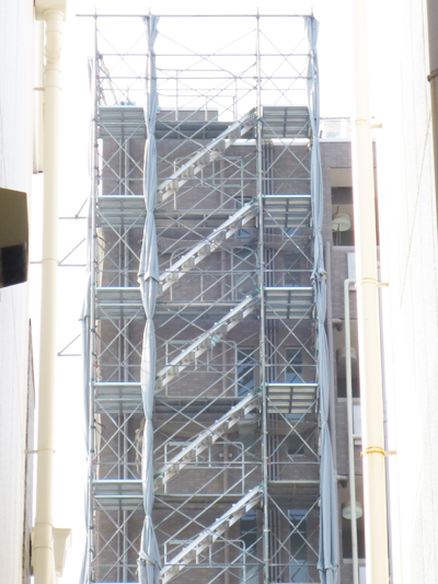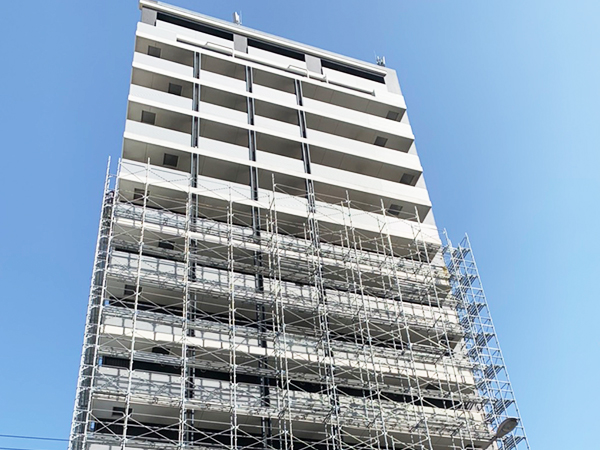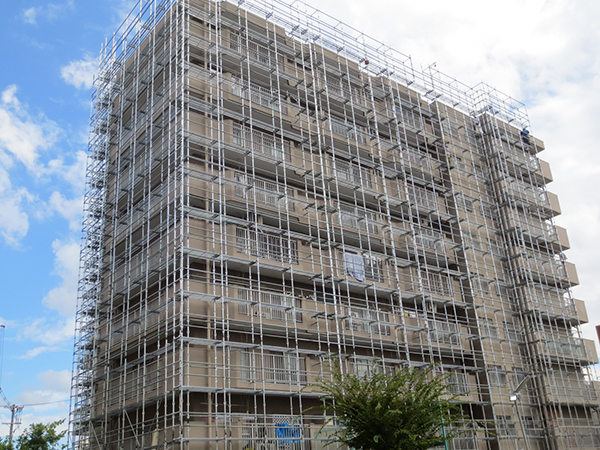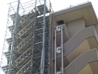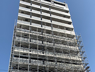 大規模マンション等では足場を施工する工事以外にも、入居者様の安全に配慮した足場作りや、工事業者用の出入り口を取り付けたり、セキュリティシステムを取り付けたり、様々な付帯工事も行う事が出来ます。