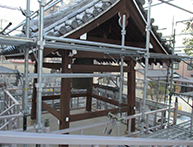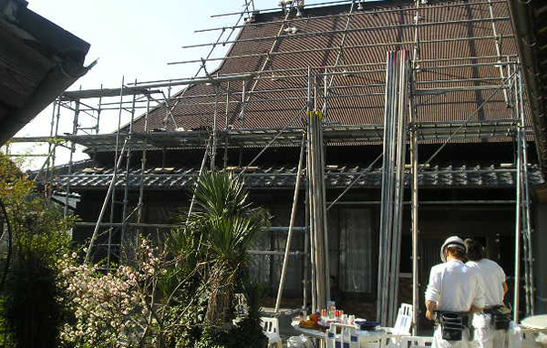 大規模マンションからアパート、戸建て住宅に至るまであらゆる仮設足場工事を行います。京都に多い、伝統的な日本家屋の屋根にも足場を施工できます。