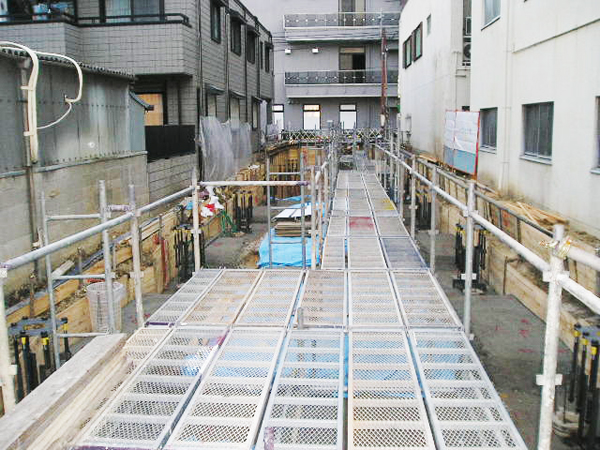 各現場の状況や用途に併せて、階段・地足場・仮囲い工事などの様々なタイプの仮設足場施工を行います。
