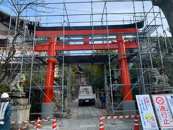もちろんそれら足場工事に付随する、仮設トイレの設置やガードマンの手配、道路使用占用許可の代行も併せて行っております。